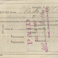 County tax receipt for Wade H Plumley, Dec 14, 1897