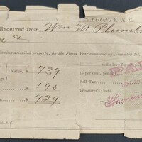 County tax receipt for Wm Plumbly, Nov. 9, 1896