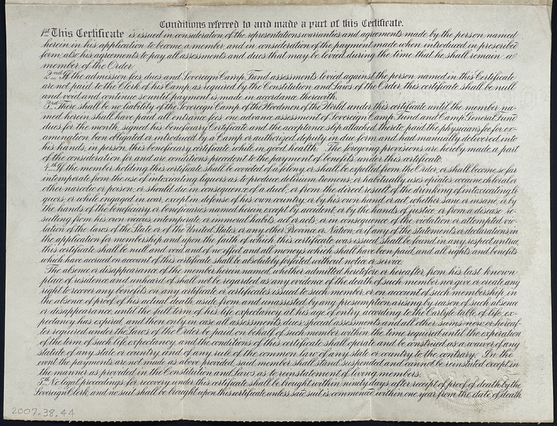 - Woodmen of the World Beneficiary Certificate for Benjamin Plumley
