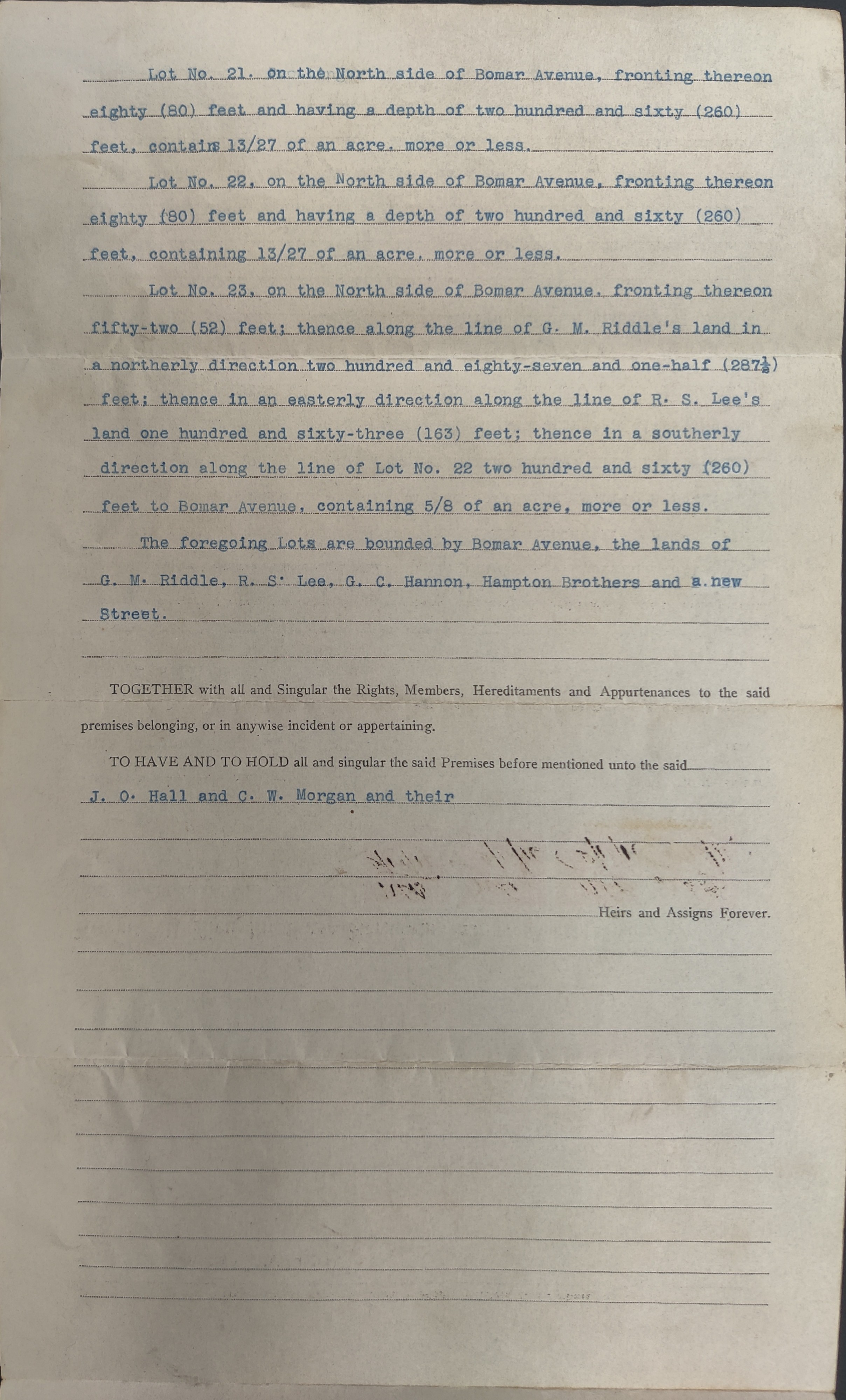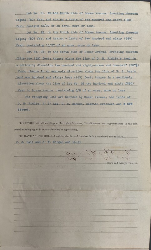 The foregoing Lots are bounded by Bomar Avenue, the lands of G.M. Riddle, R.S. Lee, G.C. Hannon, Hampton Brothers and a new Street. - Date