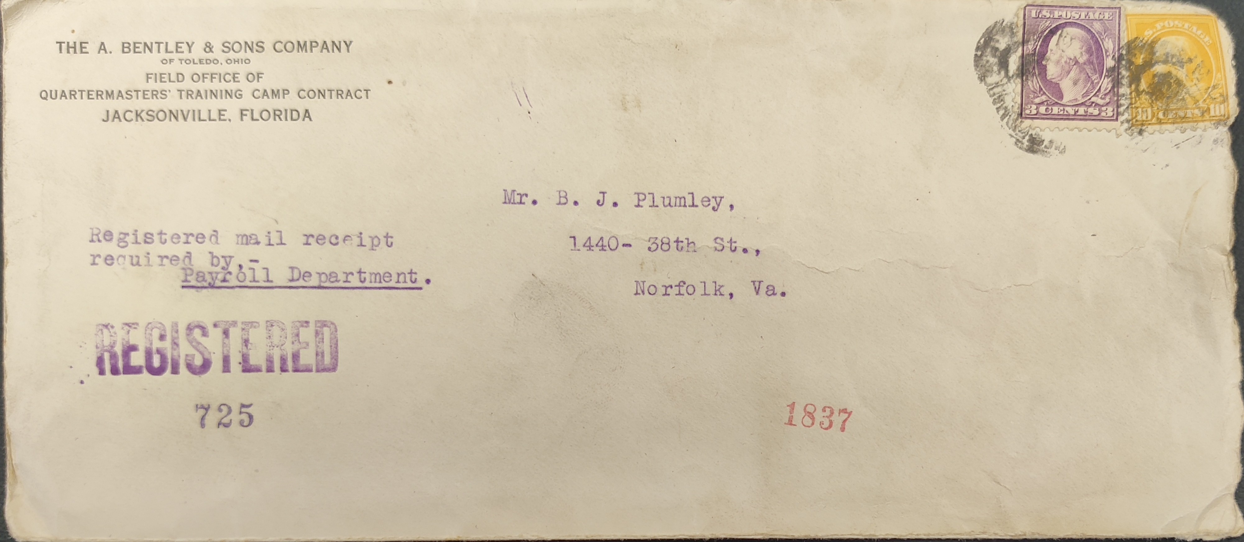 - Envelope to Mr. BJ Plumley, Norfolk, VA
