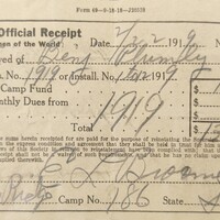Woodmen of the World receipt for Benj. Plumley, February 22, 1919