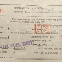 County tax receipt for B. J. Plumley, March, 1922