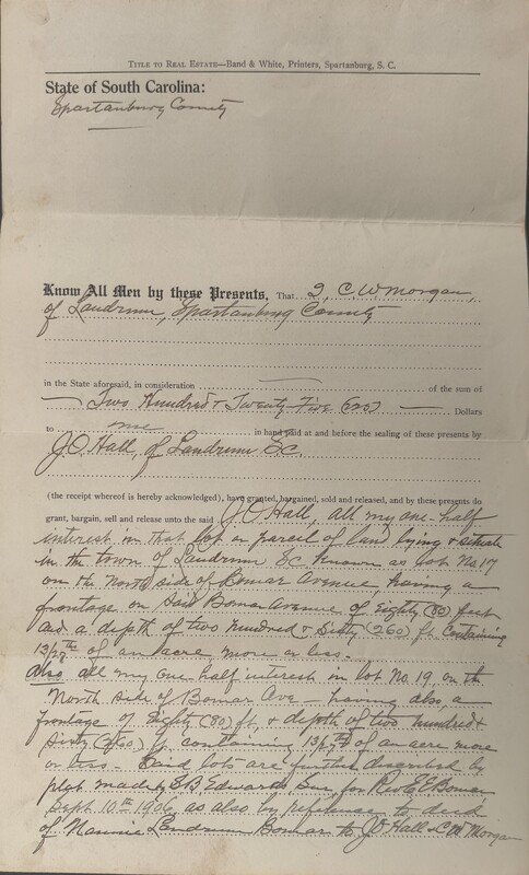 C. W. Morgan sells his one-half interest in Landrum lots 17 and 19, which they purchased from Nannie Bomar. - Date