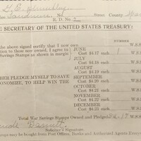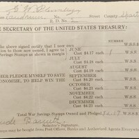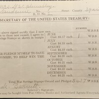 G.E. Plumley War savings stamps record