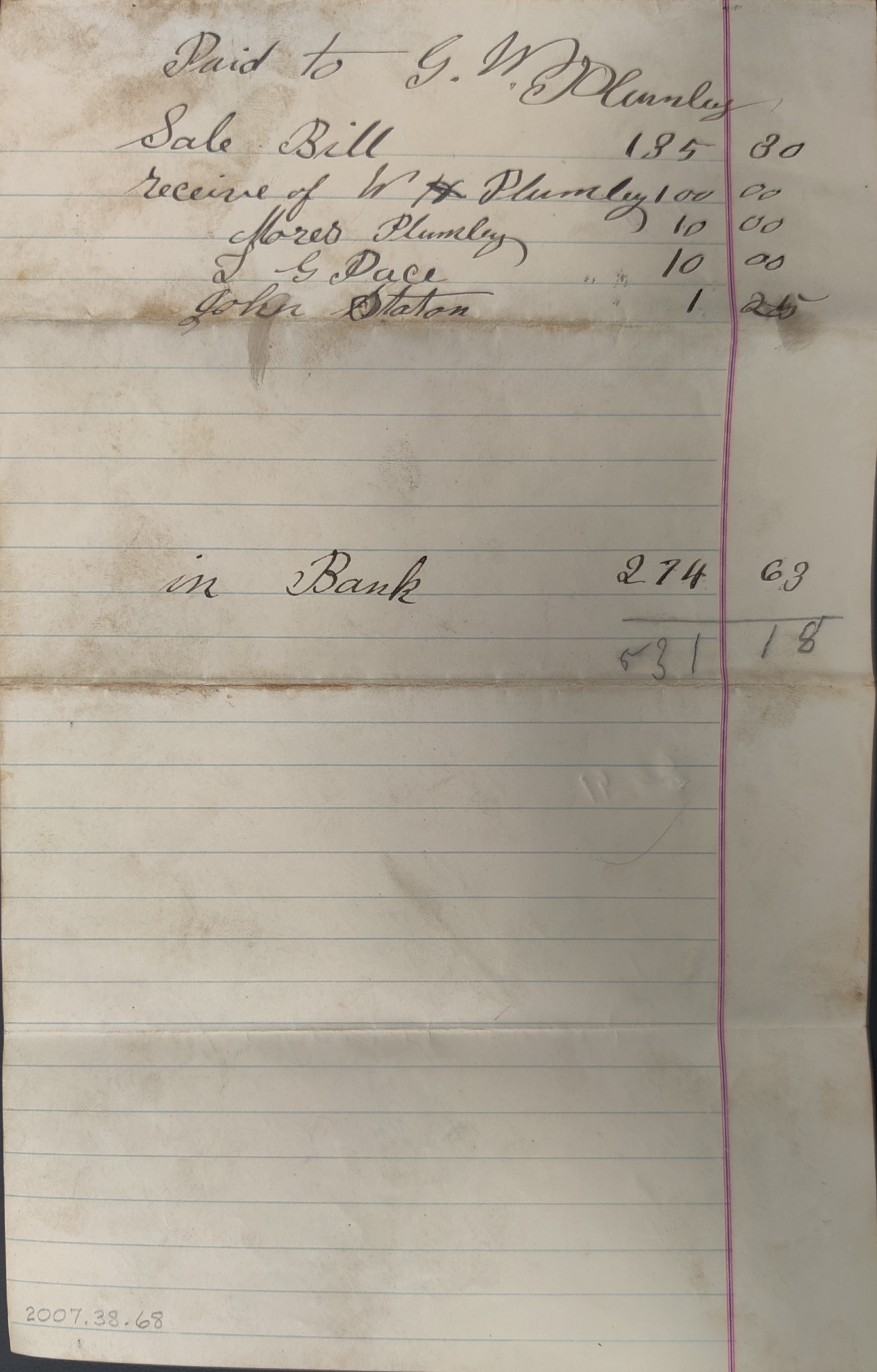 This is a register of G. W. Plumley's finances, and references many of the transactions found in other collection records — particularly those related to William Plumley's estate.