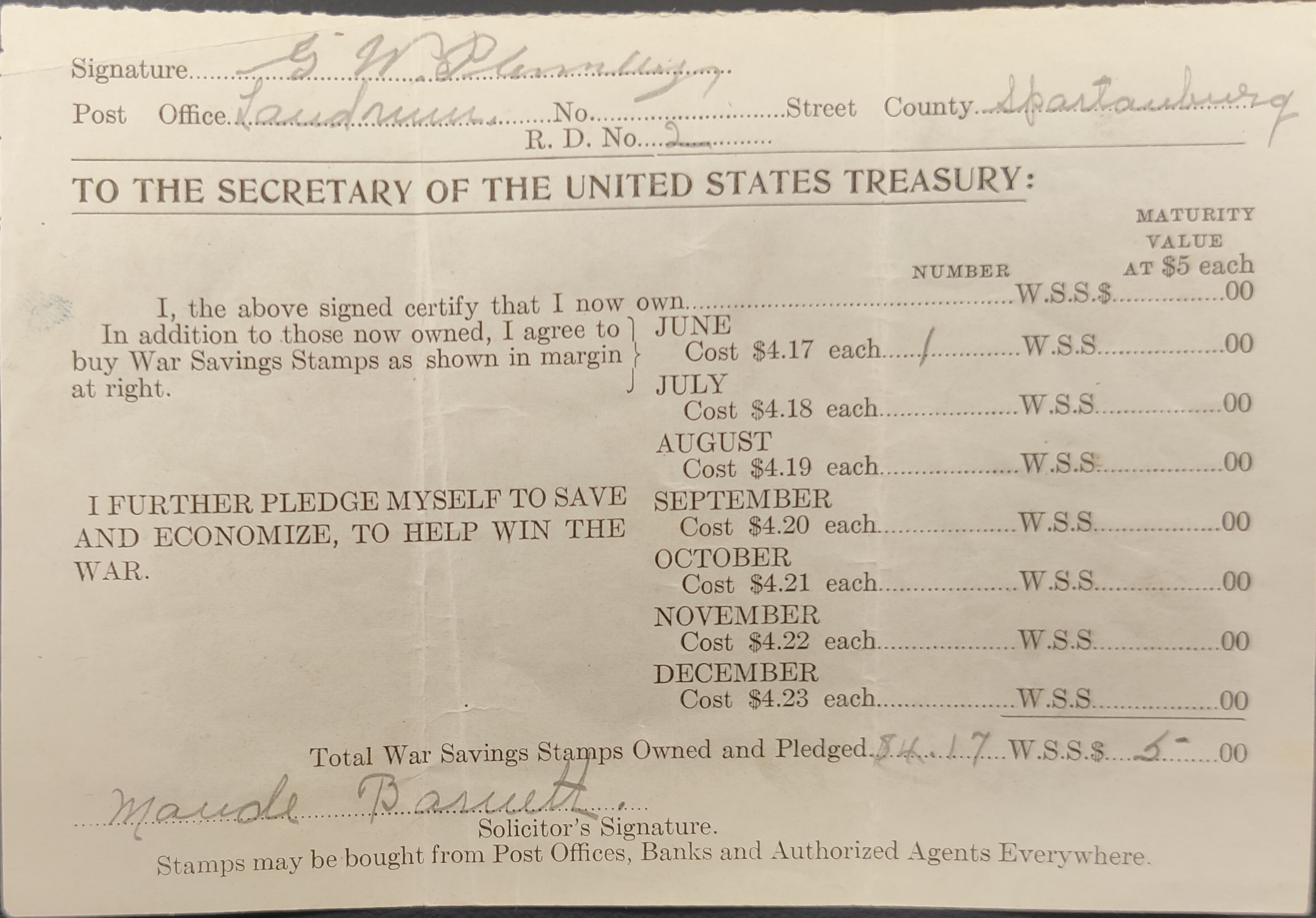 Envelope: Bank of Bradley, BJ Plumley land deed