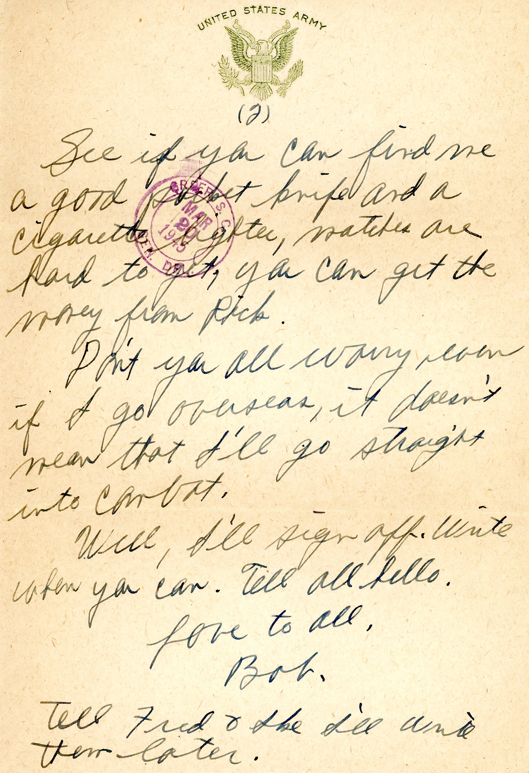 - Robert M. Clarke letters: letter from Bob, Sunday, Mar. 11, 1945