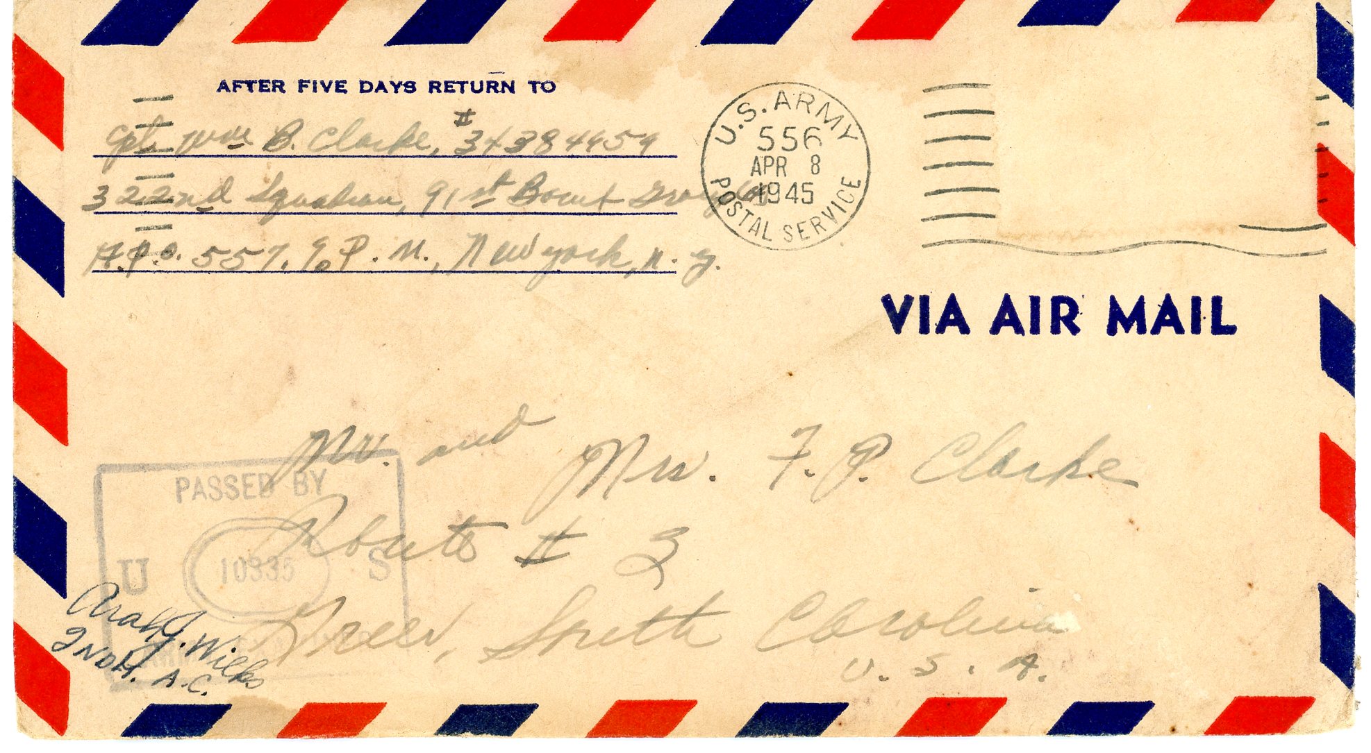 - Robert M. Clarke letters: envelope, from Bill via airmail, April 8, 1945