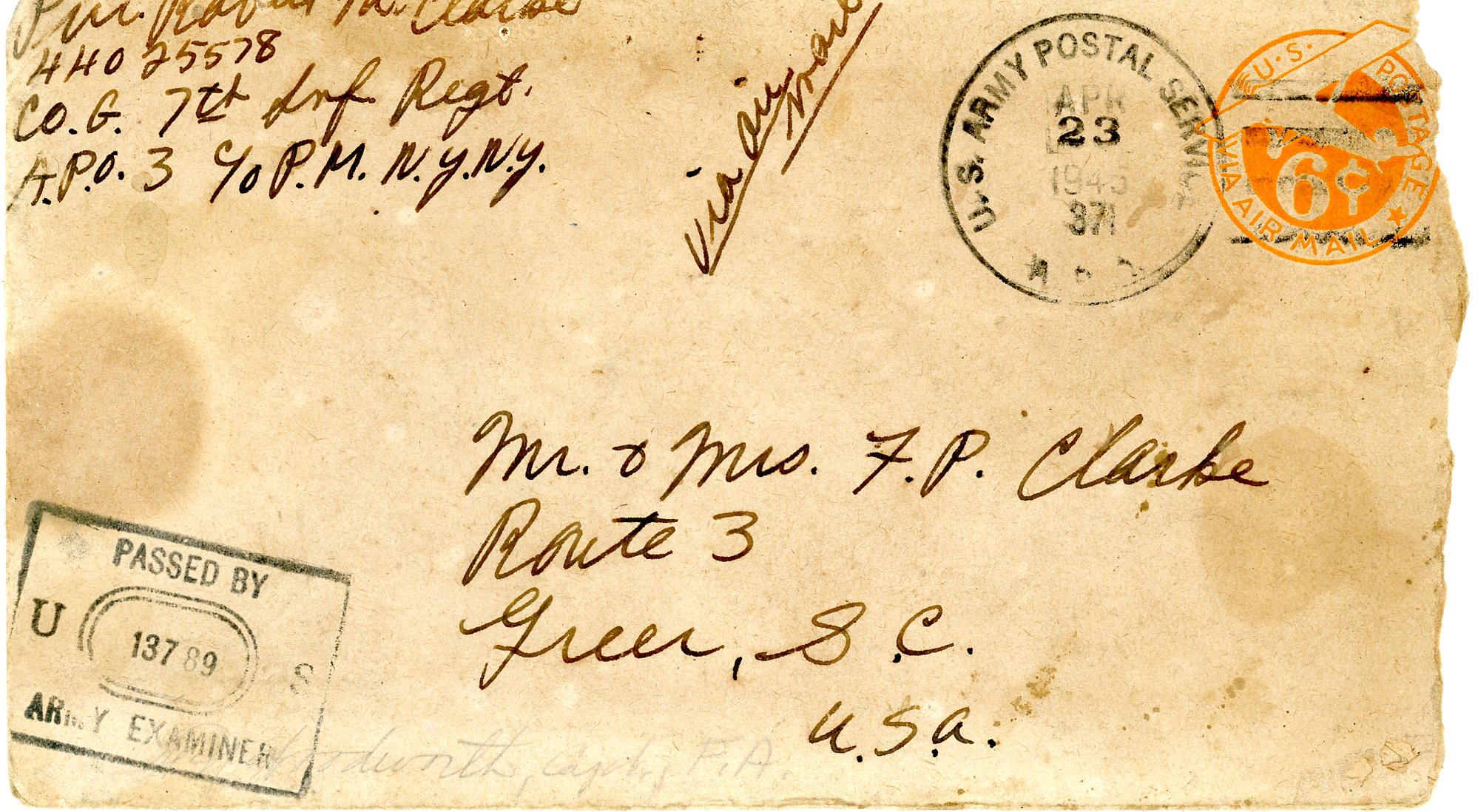 - Robert M. Clarke letters: envelope, from Bob via airmail, April 23, 1945
