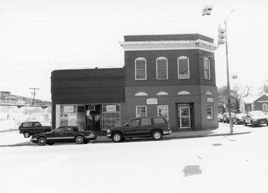 -About 1910, a 2-story brick building was raised on the corner. The 1979 SC state historical building survey states that this building was originally the First National Bank of Greer. It notes that A.G. Howell Grocery and Meat Market was located in the back of the building; it also says that Dobson Hardware later occupied the building. See the next entries.