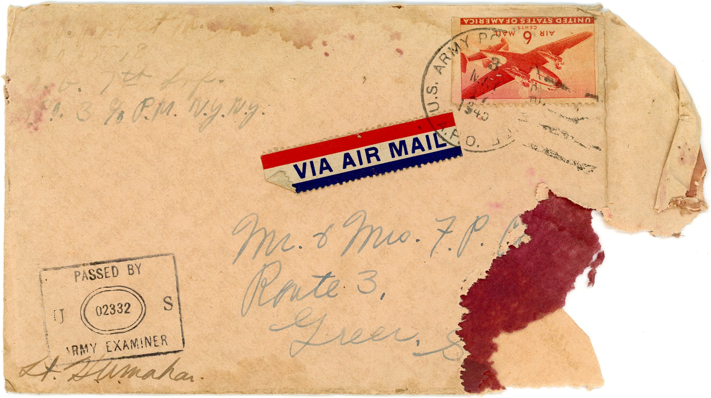 Robert M. Clarke letters: envelope, from Bob via airmail, May 17, 1945