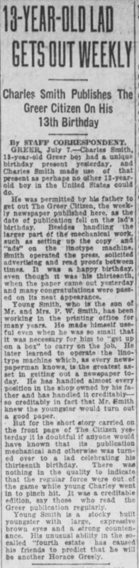 The_Greenville_News_1923_07_08_Page_7 - Charles Smith publishes Citizen at 13.jpg -