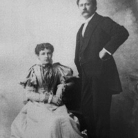 Charles and Fanny Drace at their home, 210 West Arlington Avenue. Though hard to see in this image, Charles is standing beside a baby carriage with daughter Pearl Drace. -