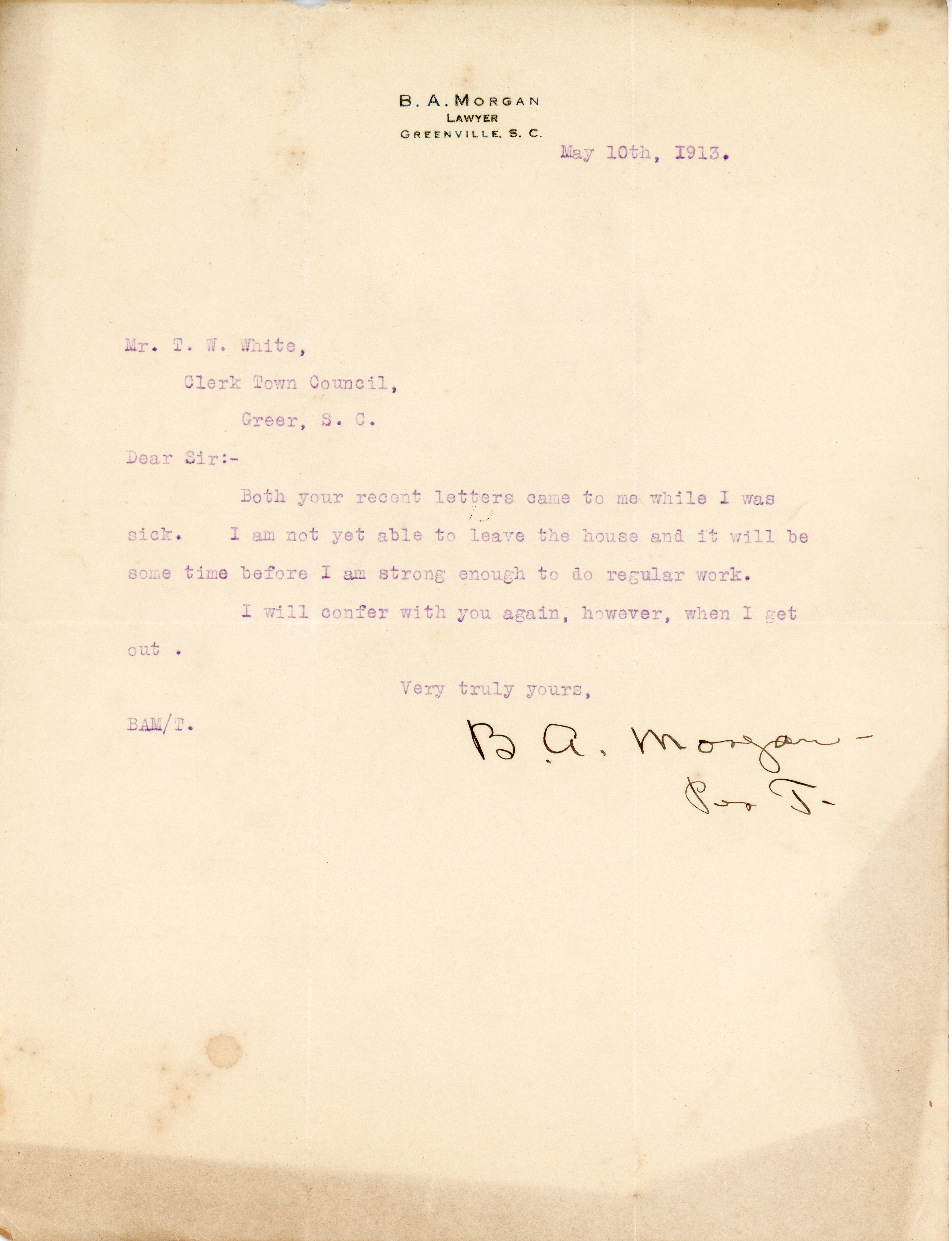 Letter 10 May 1913 B. A. Morgan to Mr. T. W. White