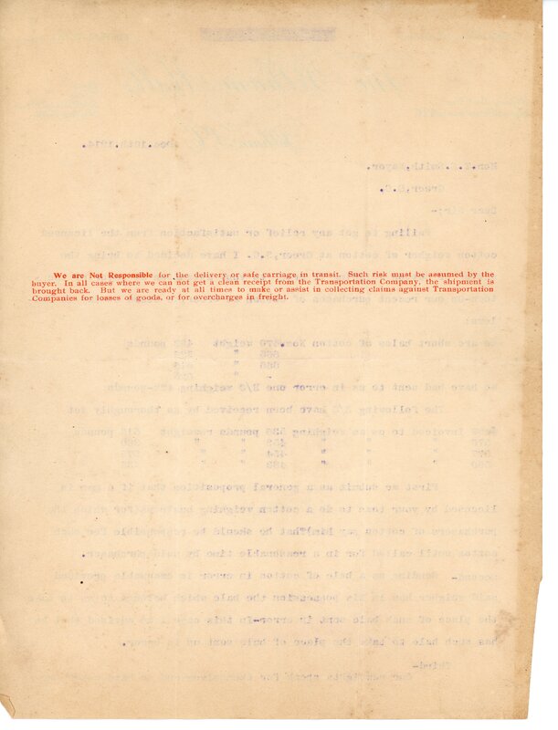 town-On our recent purchases of cotton at Greer, we stand to-day as fol-