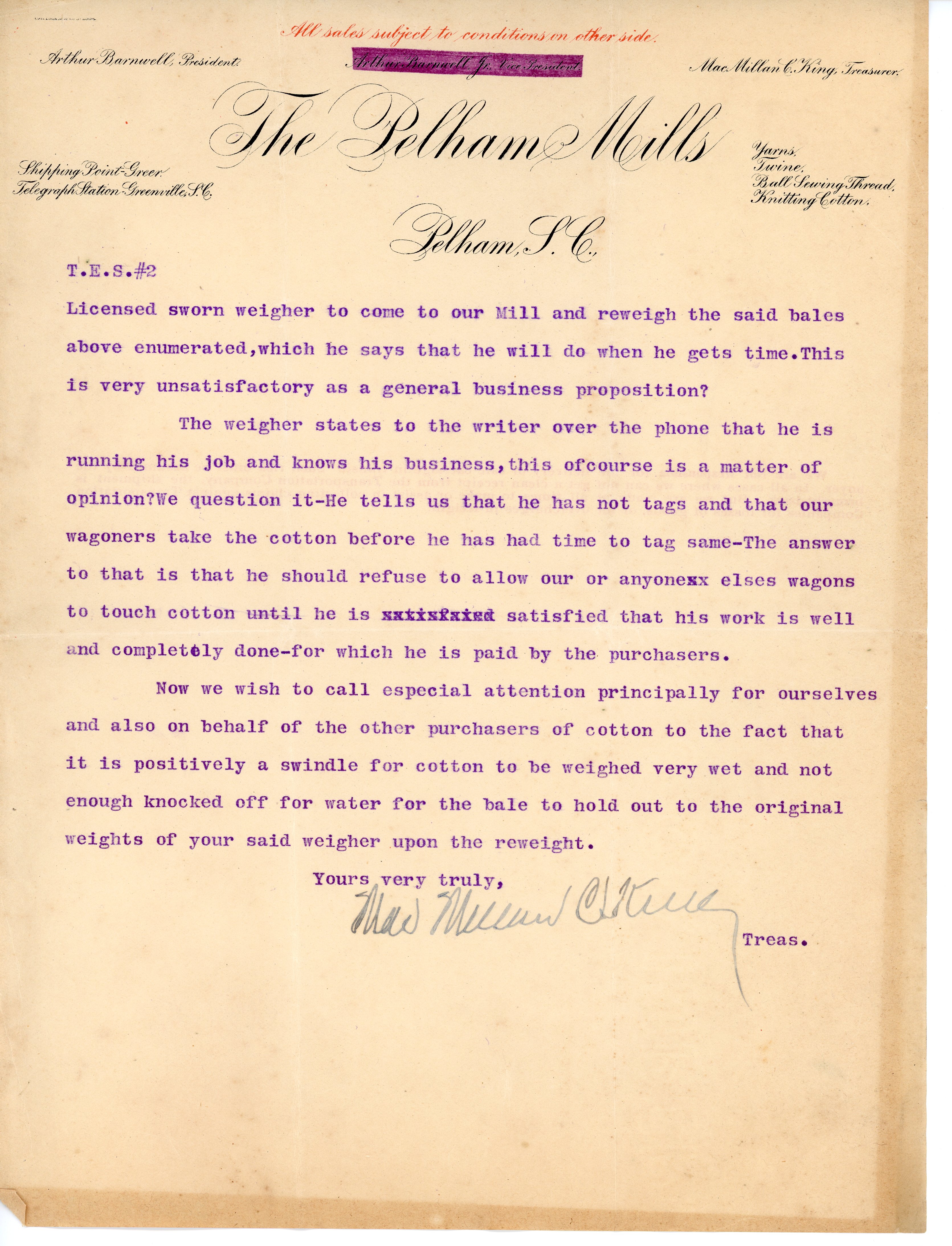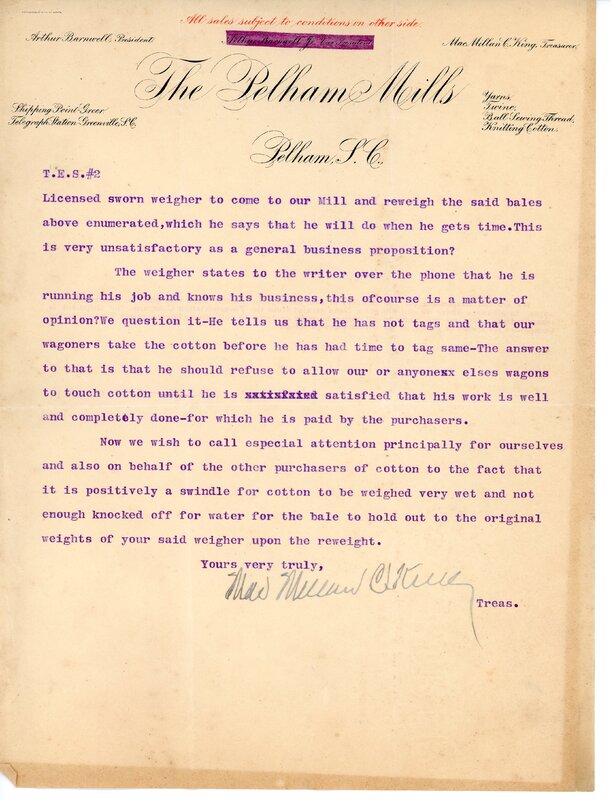 cotton weigher of cotton at Greer, S. C. I have decided to bring the