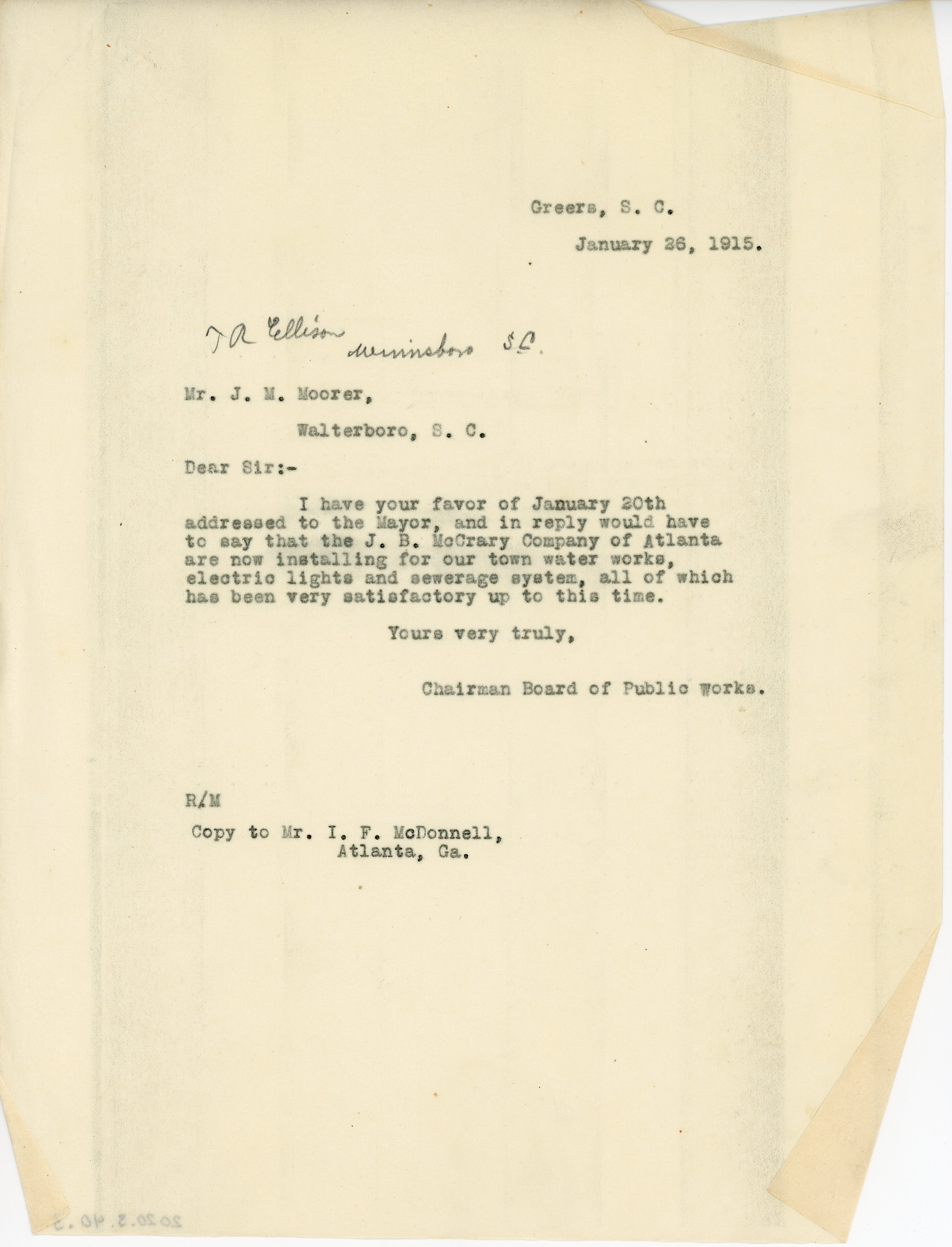 - Letter 26 January 1915 J. A. Robinson to J. M. Moorer