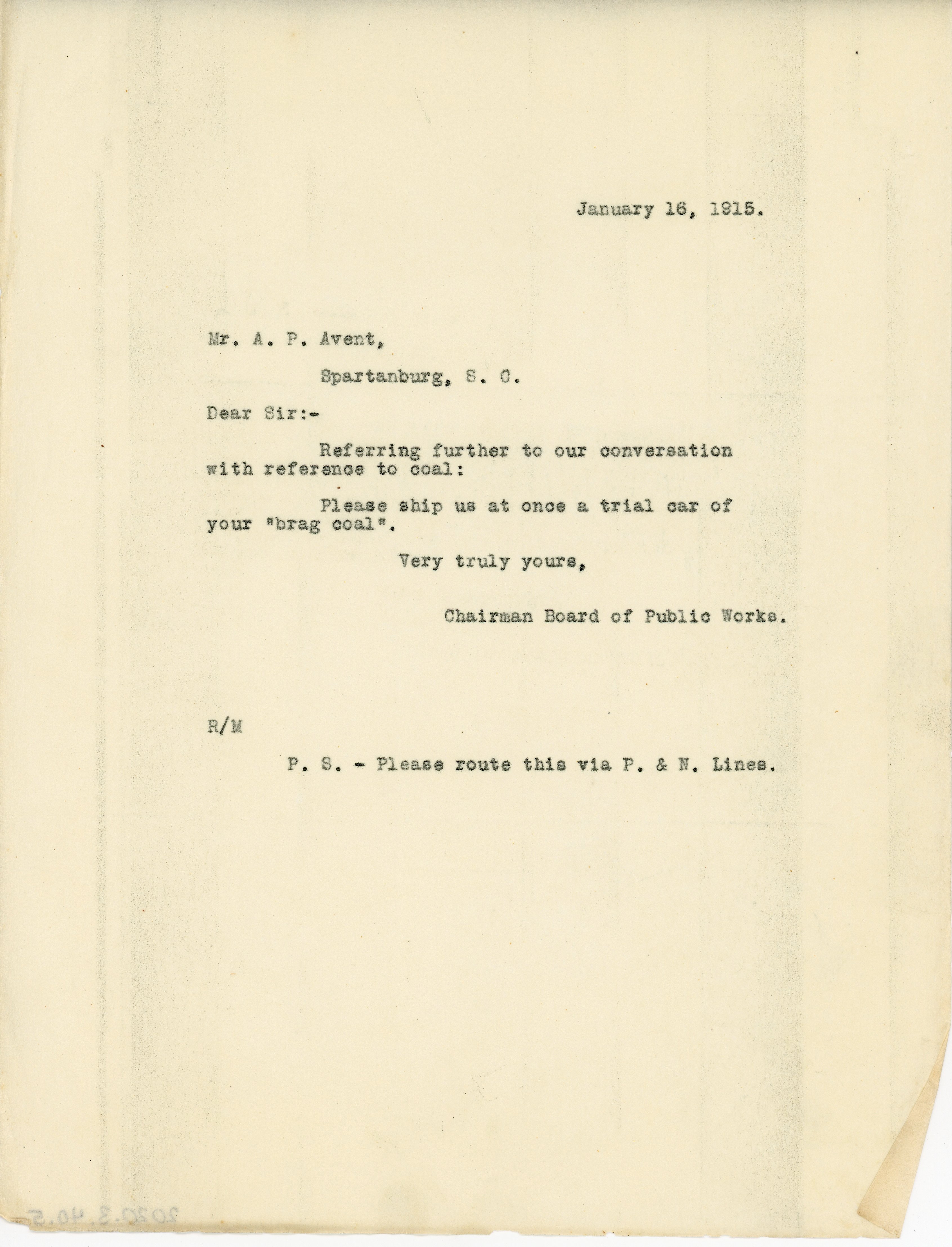 - Letter 16 January 1915 J. A. Robinson to A. P. Avent