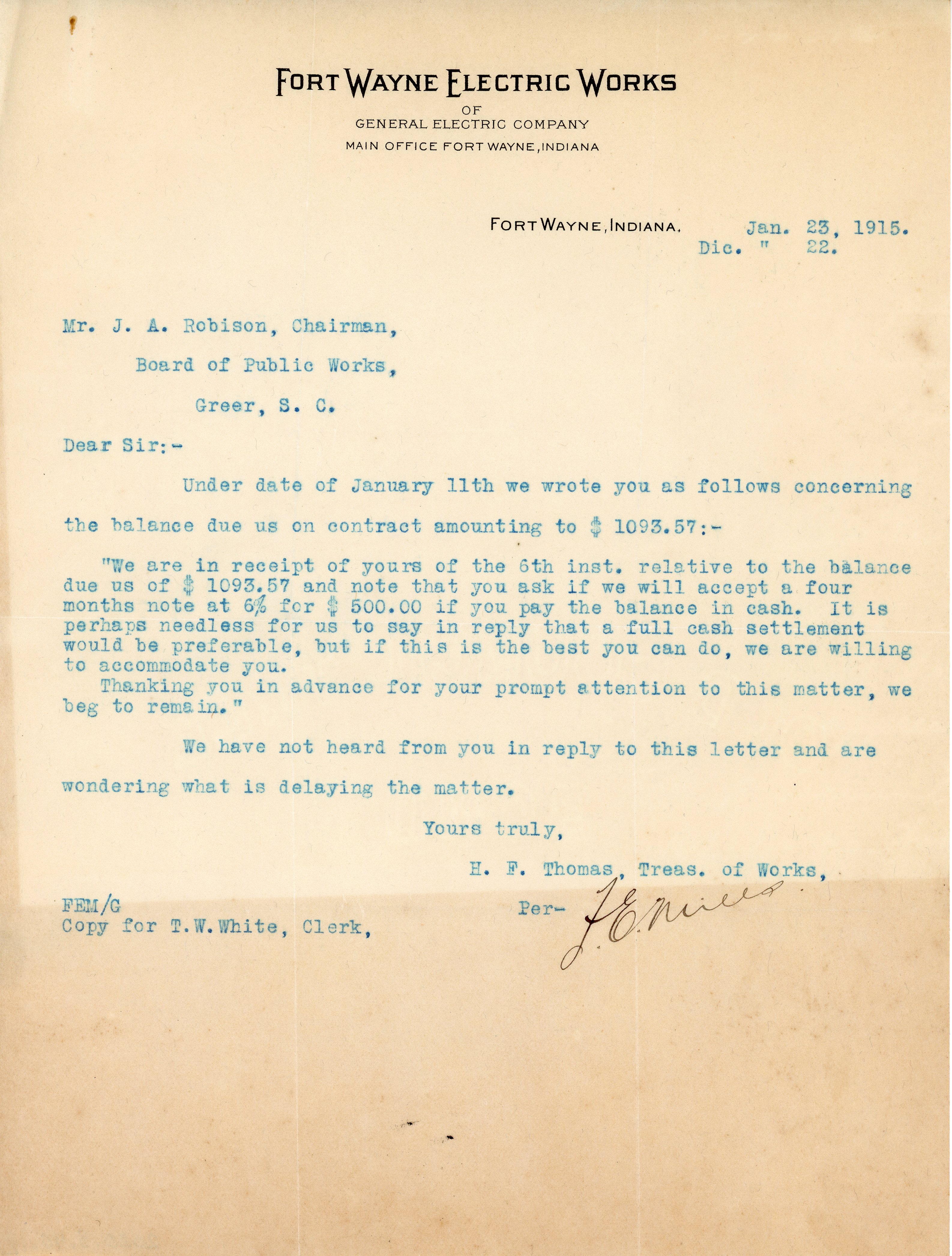 - Letter 23 January 1915 H. F. Thomas to J. A. Robinson