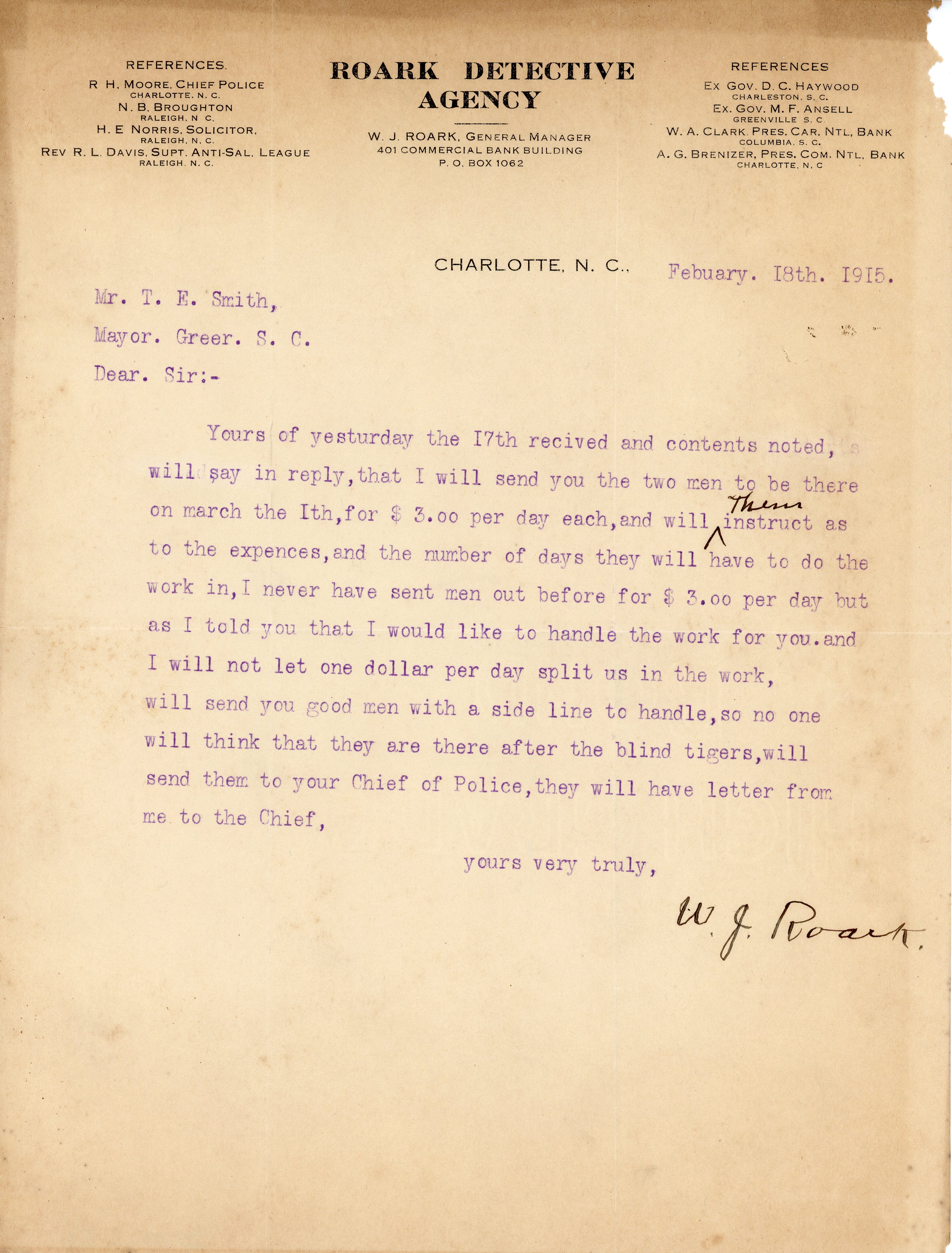 Letter 18 February 1915 W. J. Roark to T. E. Smith