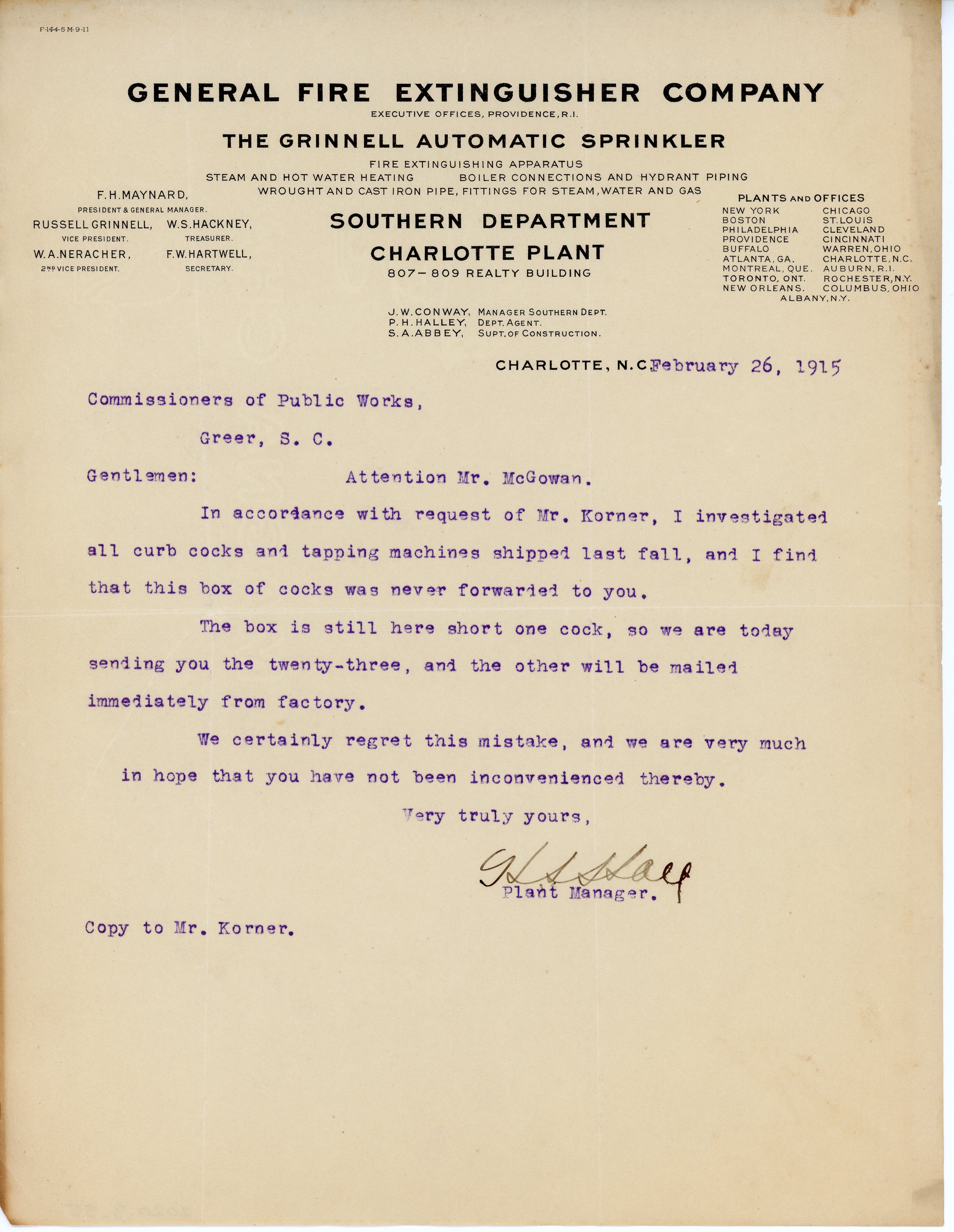 Letter 26 February 1915 H. S. Hall to J. A. Robinson