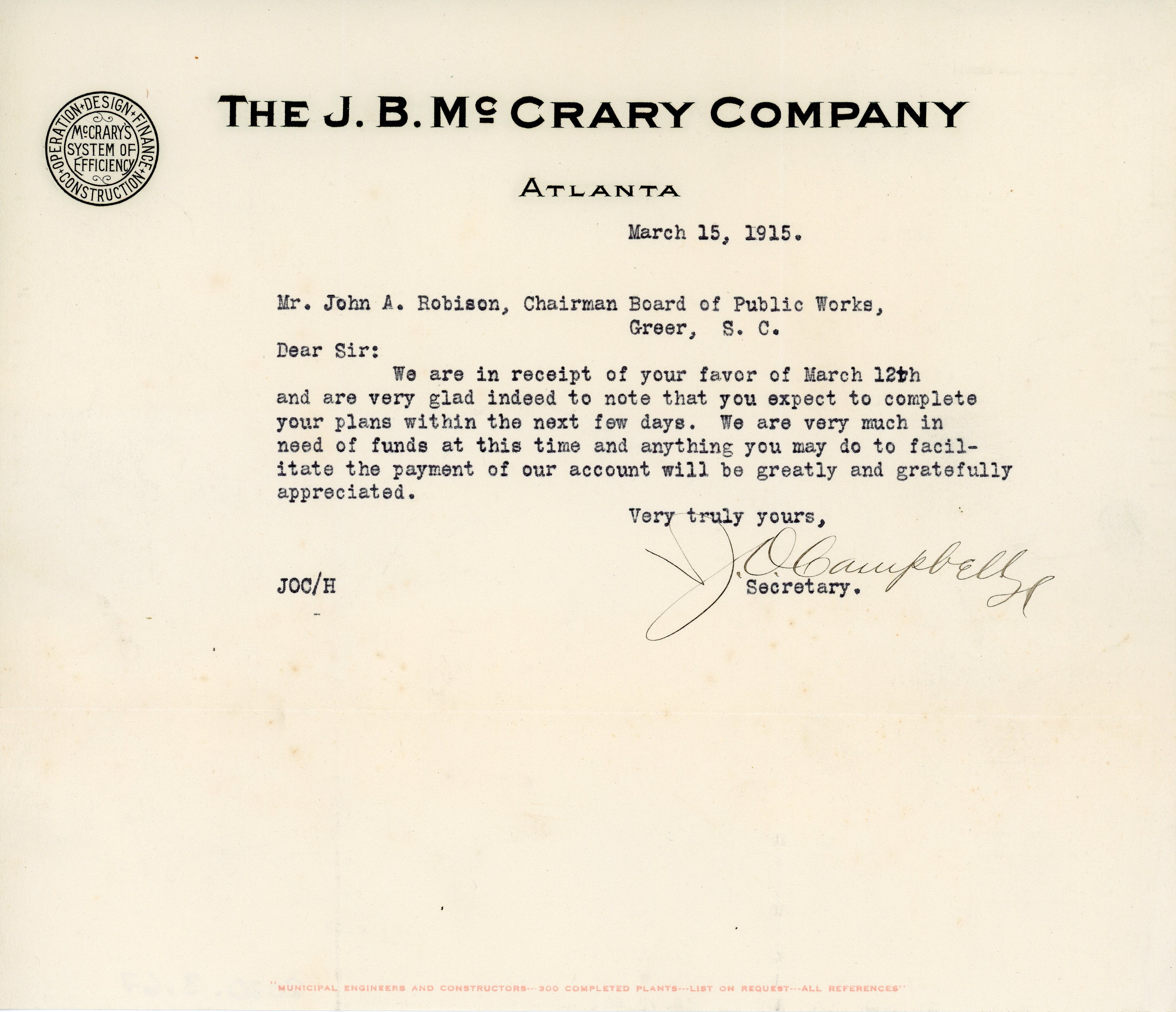 - Letter 15 March 1915 J. O. C [illegible] to J. A. Robinson