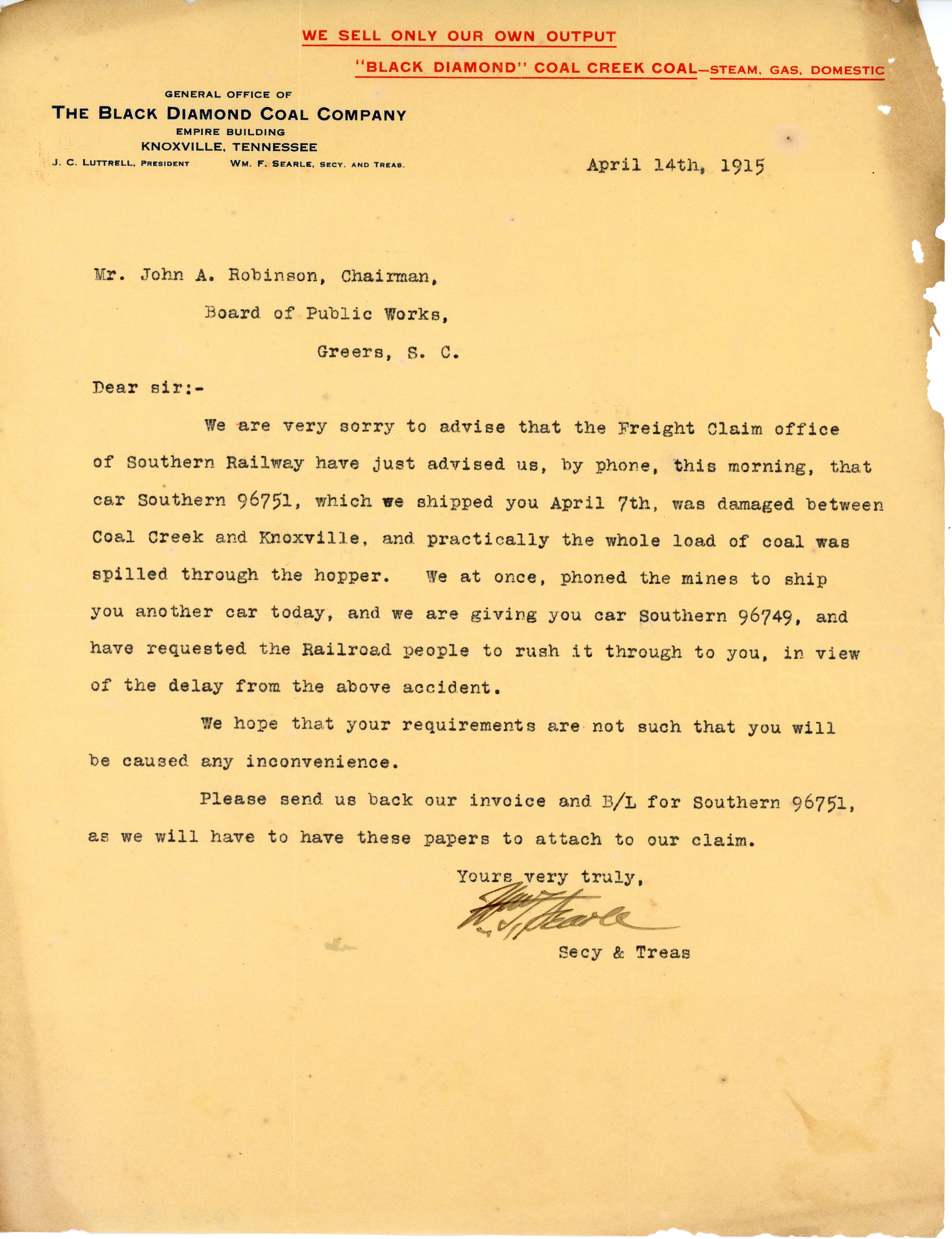 - Letter 14 April 1915 W. F. Searle to J. A. Robinson