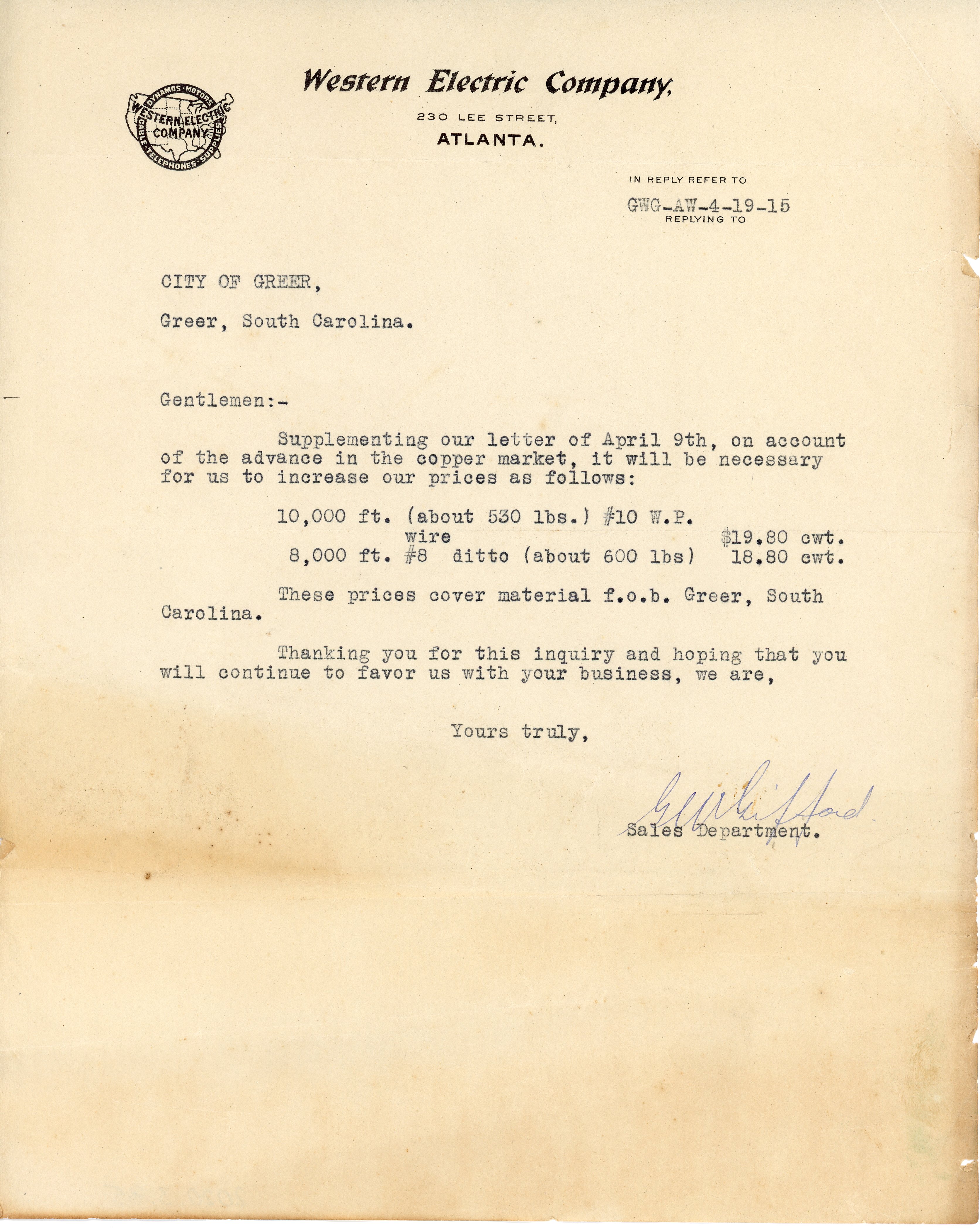 Letter 19 April 1915 G. W. Gifford to J. A. Robinson