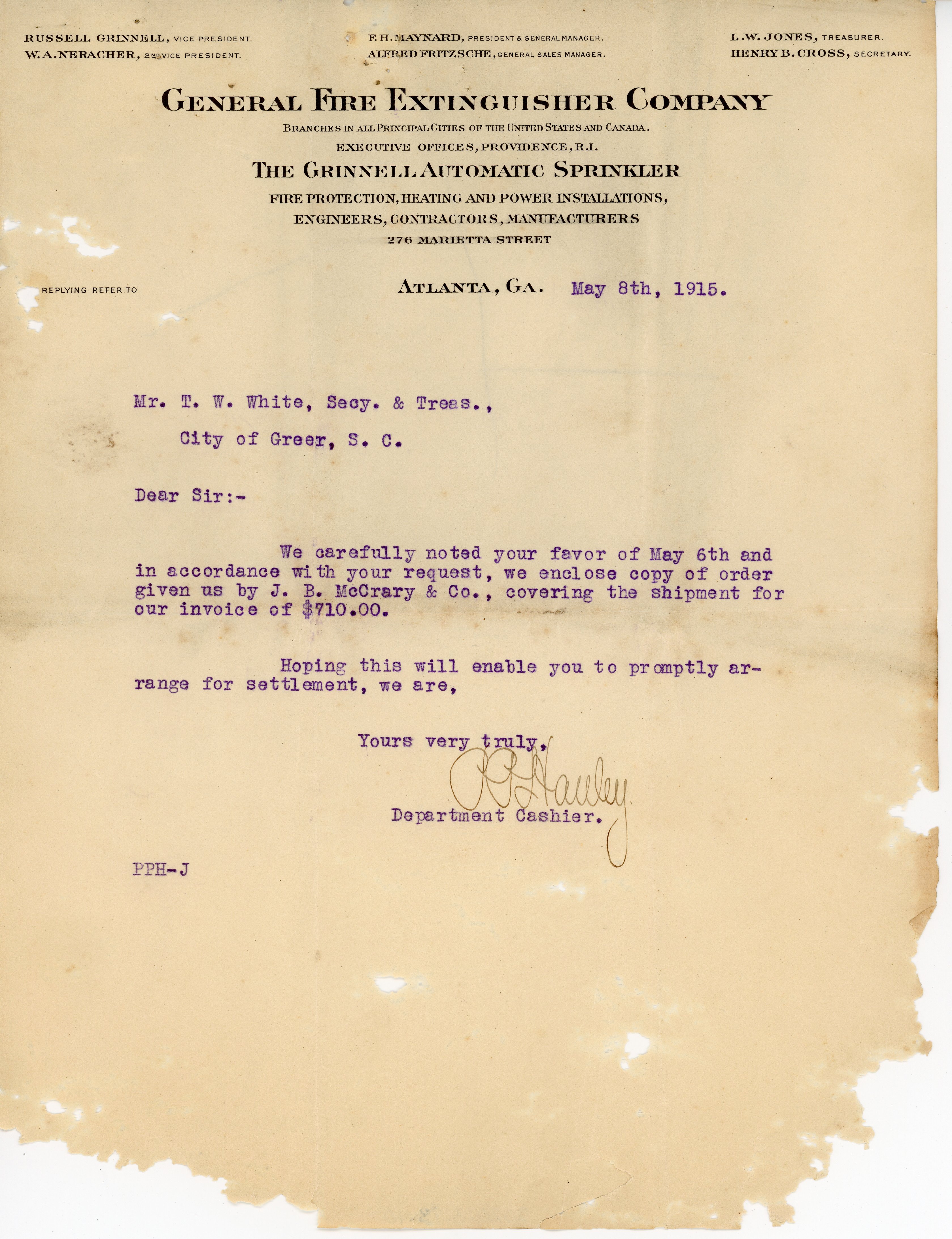 Letter 8 May 1915 P. P. Hawley to T. W. White