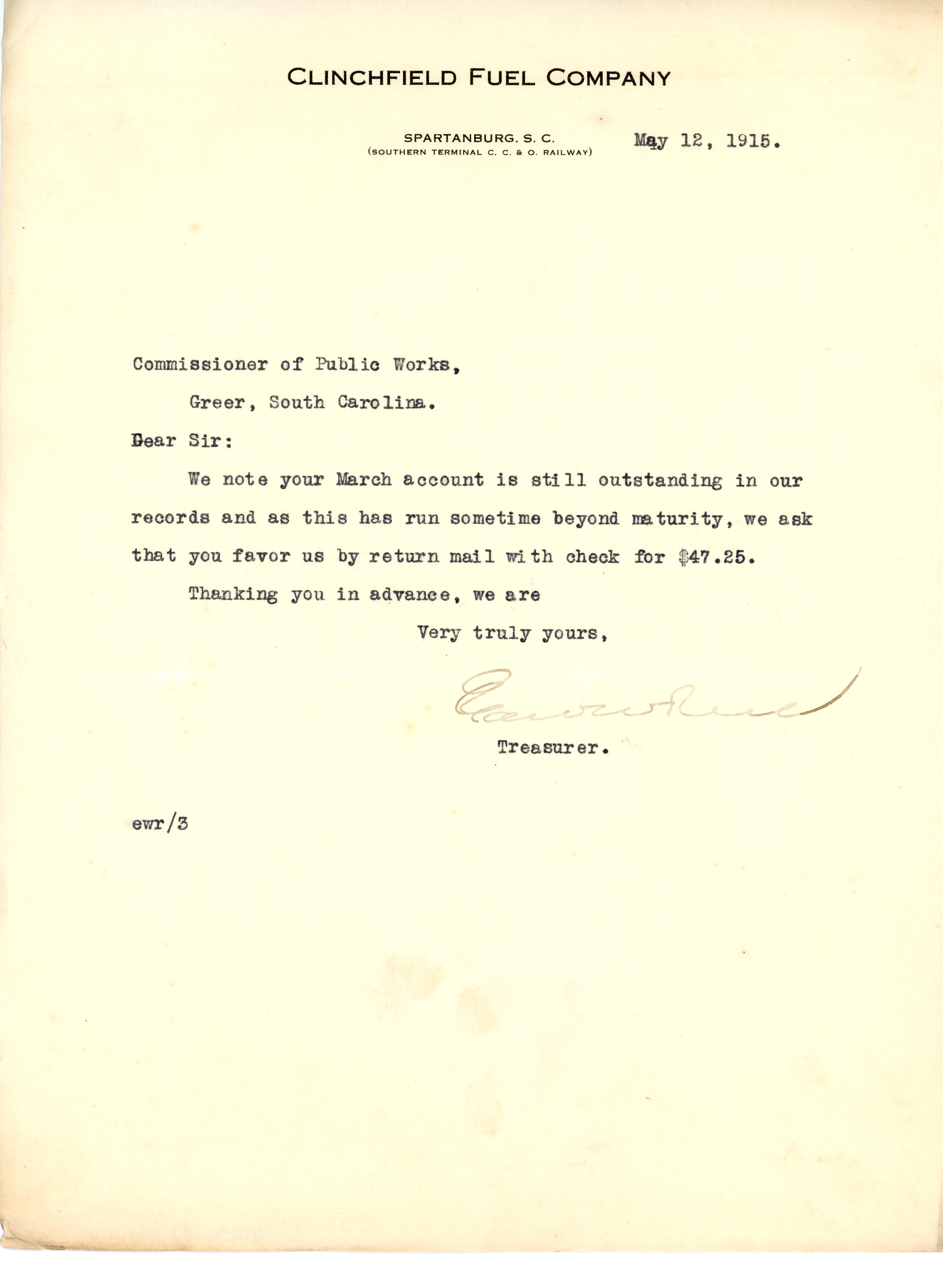 Letter 12 May 1915 E. W. R. [illegible] to J. A. Robinson