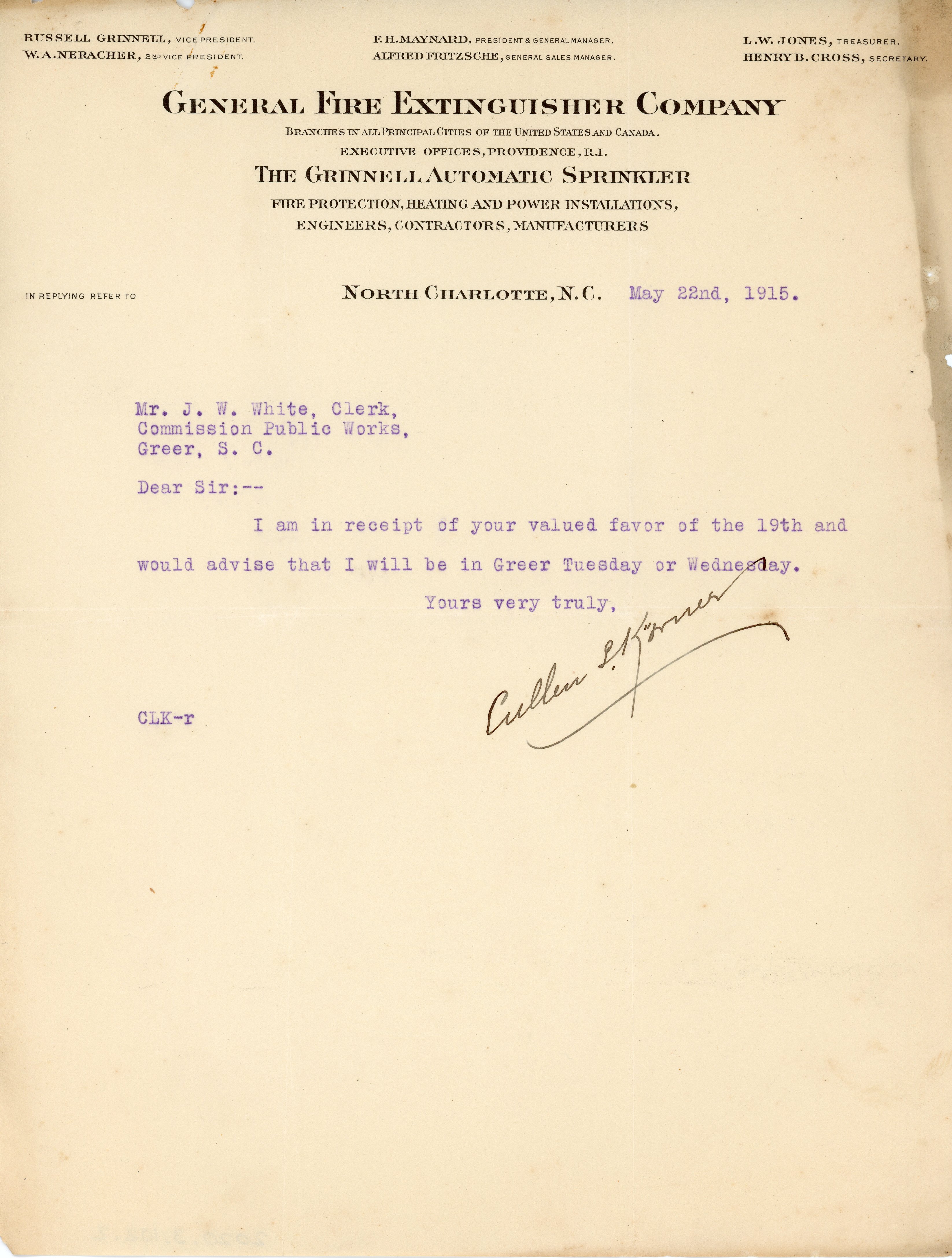 Letter 22 May 1915 C. L. K. [illegible] to J. W. White