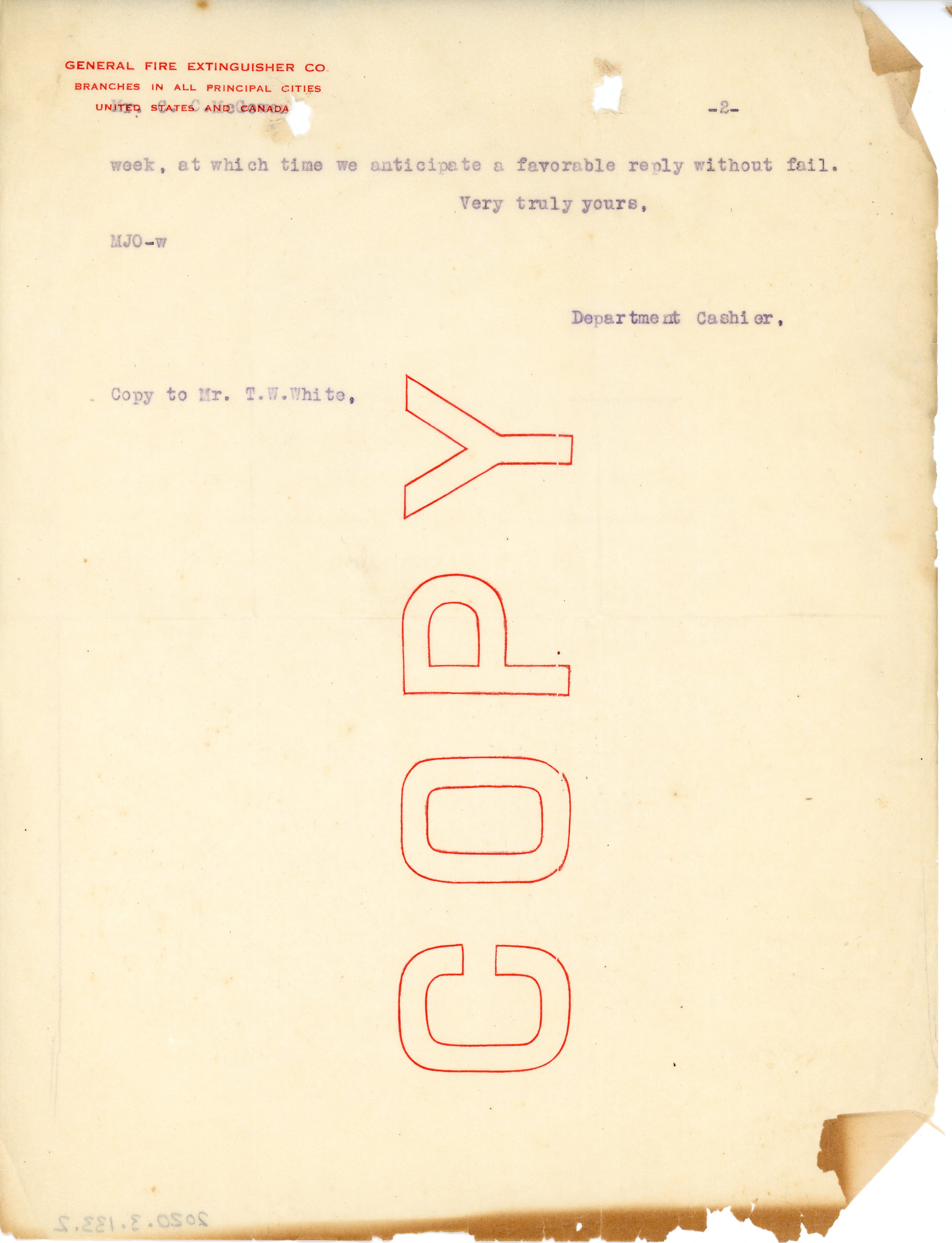 - Letter 30 July 1915 General Fire Extinguisher Co. to C. C. McGowan