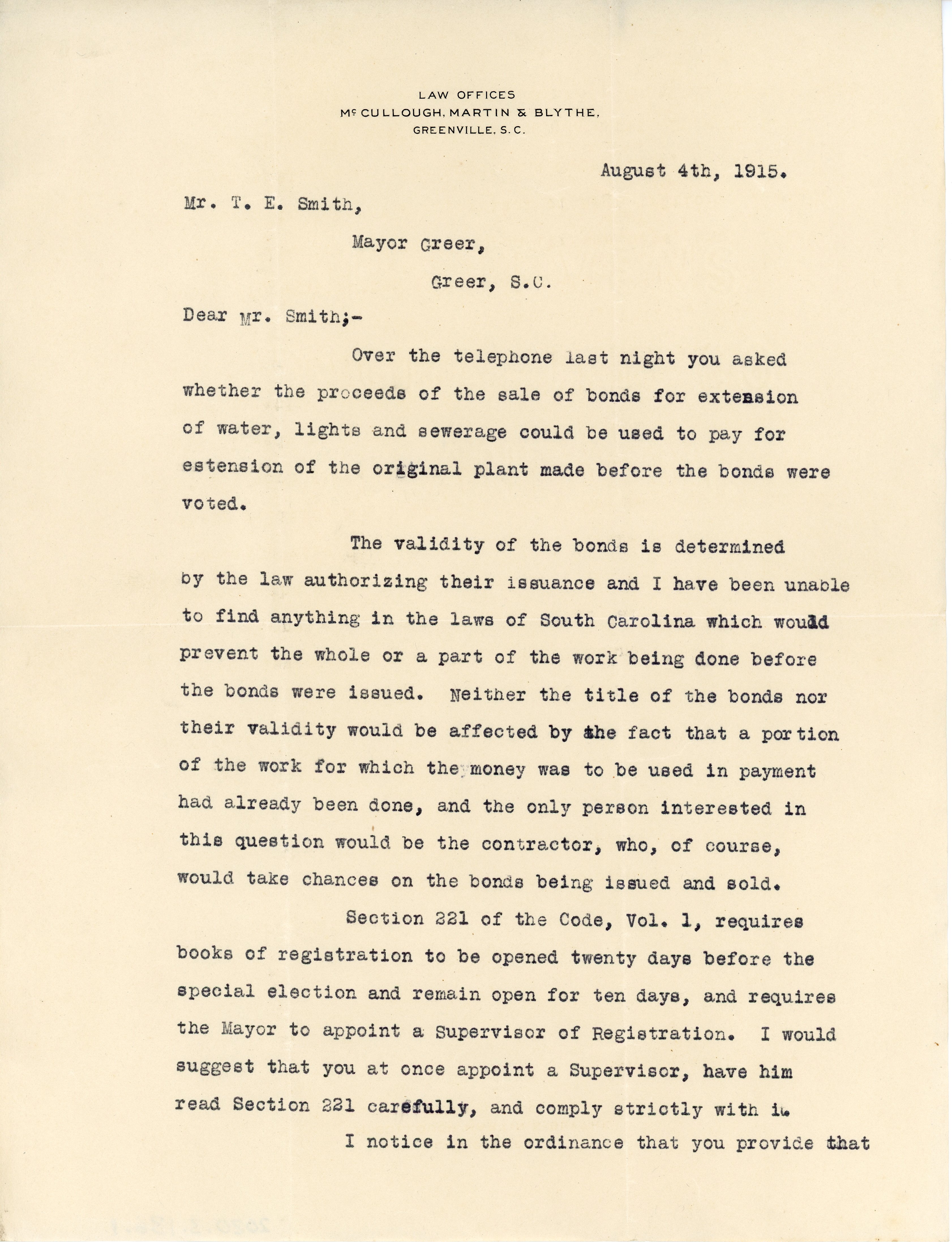 Letter 4 August 1915 E. M. B. [illegible] to T. E. Smith