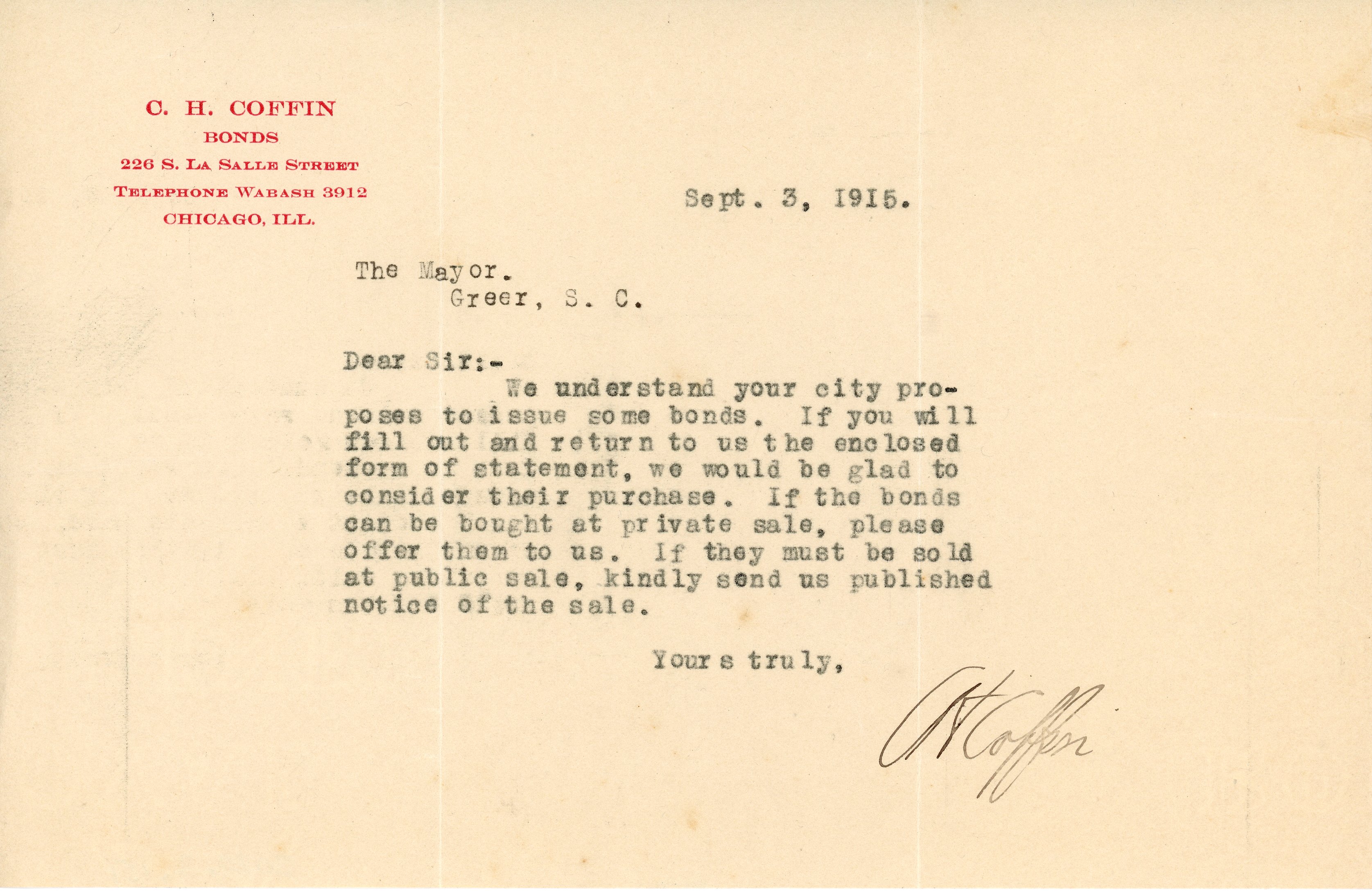 - Letter 3 September 1915 C. H. Coffin to T. E. Smith