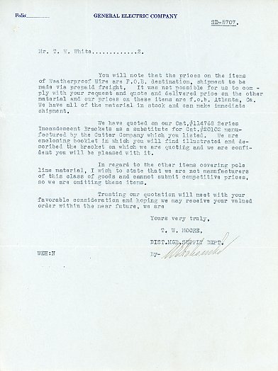 - Letter 9 September 1915 W. E. H. [illegible] via T. W. Moore to T. W. White