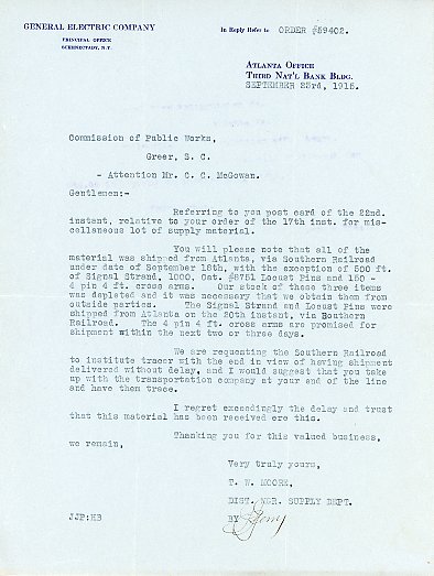 - Letter 23 September 1915 J. J. P. [illegible] by T. W. Moore to C. C. McGowan