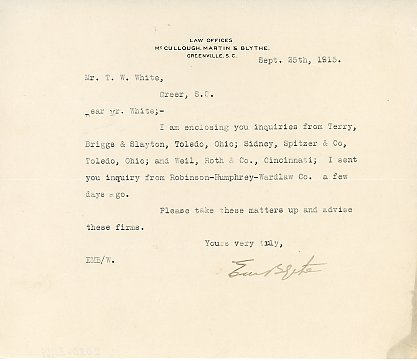 Letter 25 September 1915 E. M. B. [illegible] to T. W. White