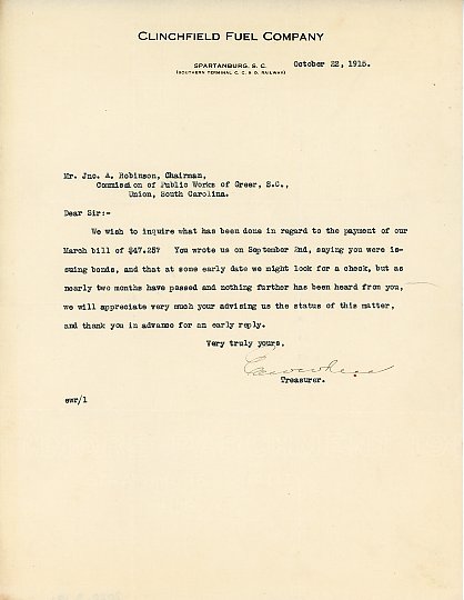 - Letter 22 October 1915 E. W. R. [illegible] to J. A. Robinson