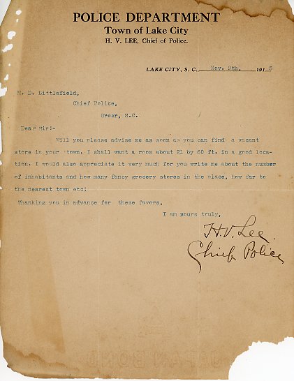 - Letter 9 November 1915 H. V. Lee to M. D. Littlefield