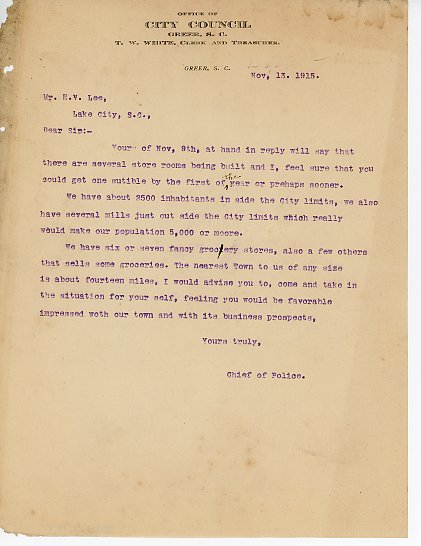 - Letter 13 November 1915 M. D. Littlefield to H. V. Lee