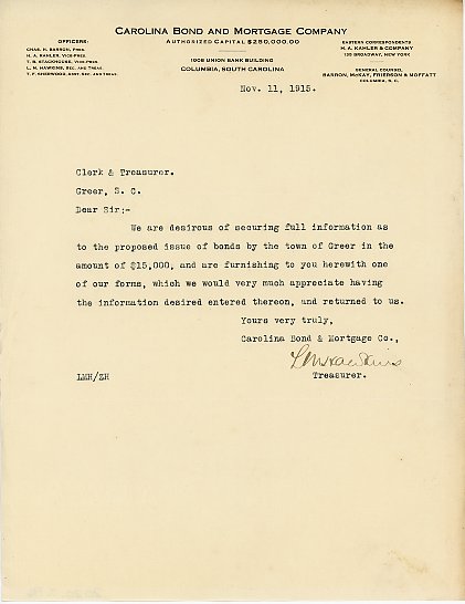 Letter 11 November 1915 L. M. Hawkins to T. W. White