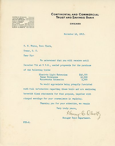 Letter 13 November 1915 H. C. Olcott to T. W. White