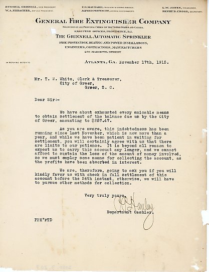 Letter 7 November 1915 P. P. Hauley to T. W. White