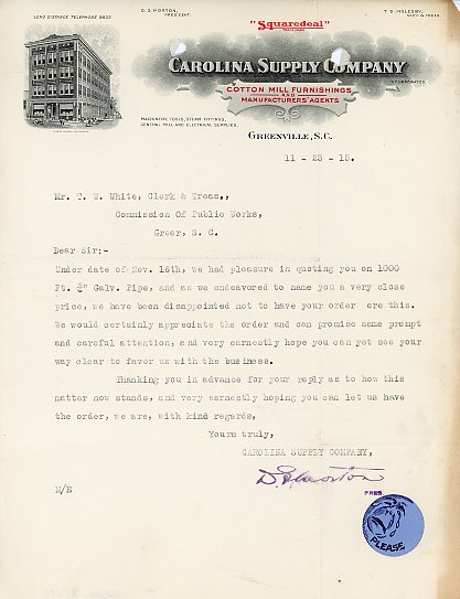 Letter 23 November 1915 D. G. Morton to T. W. White