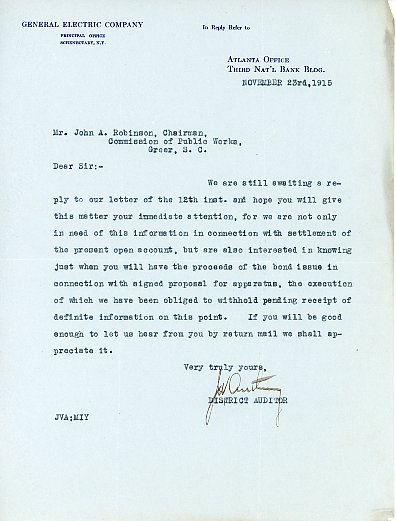 Letter 23 November 1915 J. V. A. [illegible] to J. A. Robinson