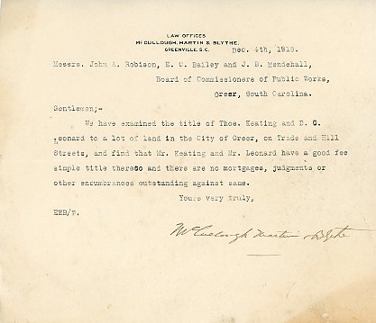 Letter 4 December 1915 E. M. B [illegible] to J. A. Robison [J. A. Robinson], E. C. Bailey & J. B. Mendehall [J. B. Mendenhall]