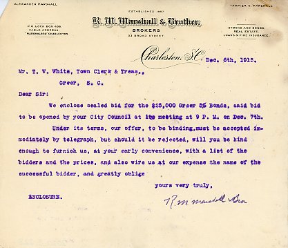 Letter 6 December 1915 R. M. Marshall & Brother to T. W. White
