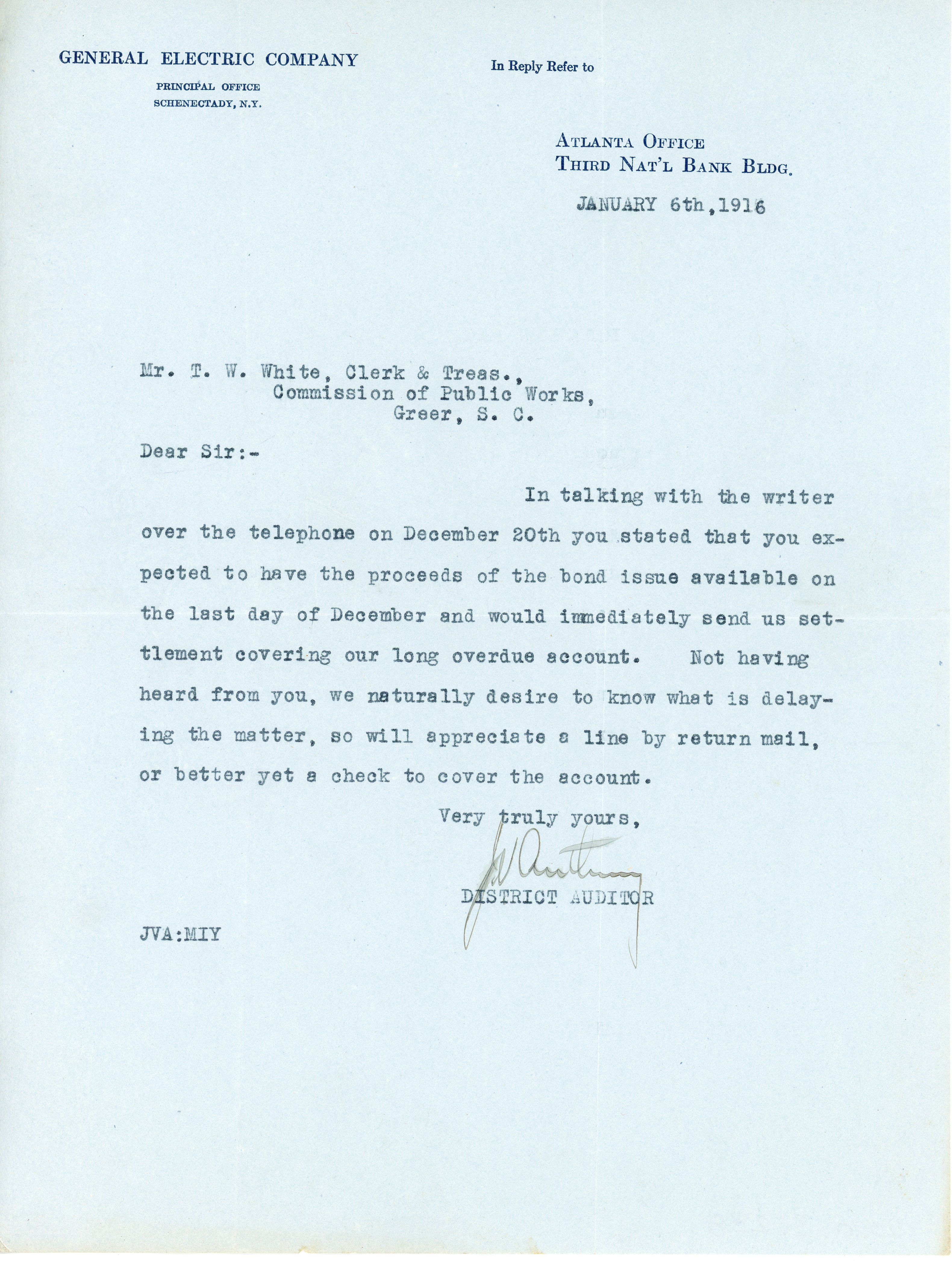 - Letter 6 January 1916 J. V. A. [illegible] to T. W. White