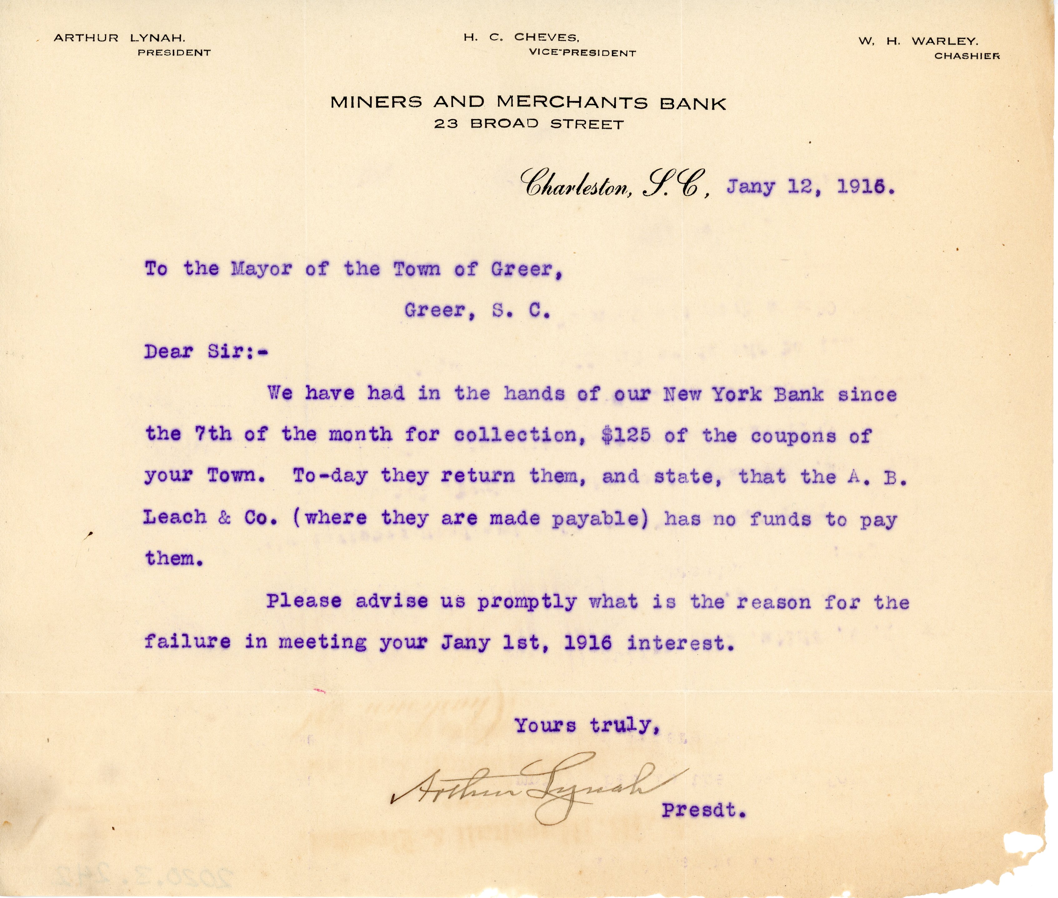 - Letter 12 January 1916 A. Lynah to T. E. Smith